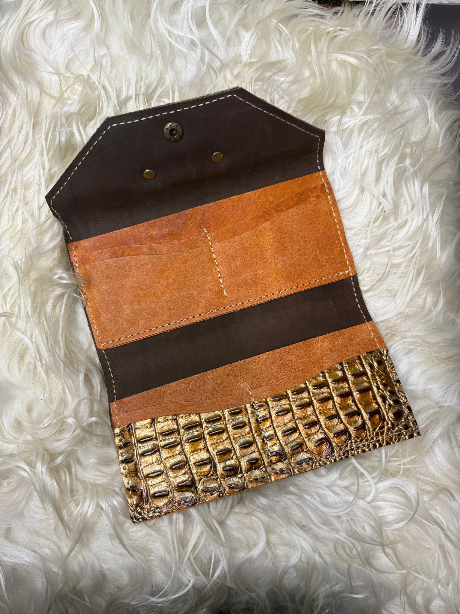 • Load image into Gallery viewer, Green Trifold Wallet Genuine Alligator