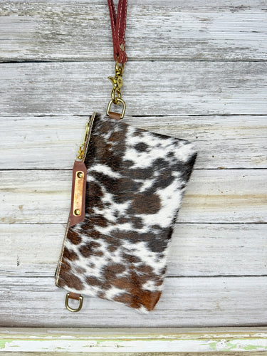 Black and White Cowhide Jessica Wristlet with Red Fringe
